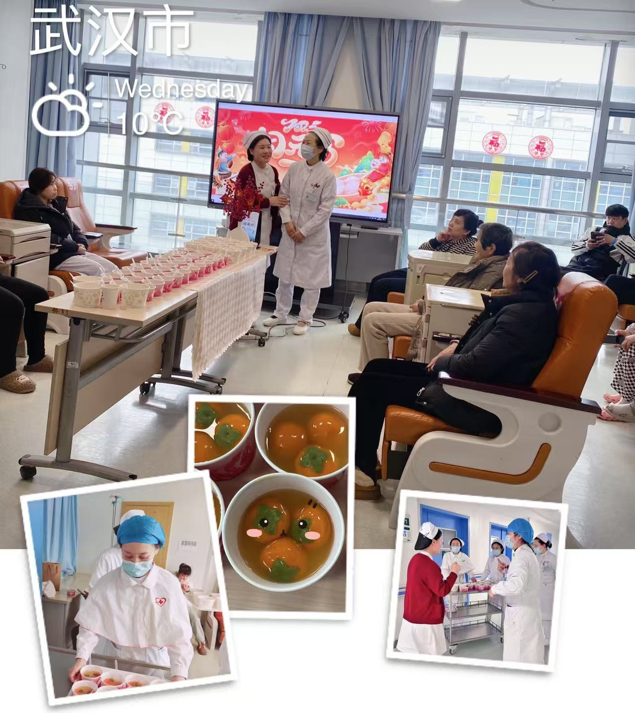 五官科郭三兰总护士长也来到眼科病房,与蒋玲护士长一同将美好的祝福送给每一位住院患者。一碗碗满载着医护团队心意的汤圆被端进病房,患者们在接到汤圆的那一刻,脸上绽放出惊喜与感动的笑容。医护人员还将一张张精美的祝福贺卡赠予患者,病房里充满了欢声笑语,患者们感受到了浓浓的节日氛围和医护人员的深切关怀。
